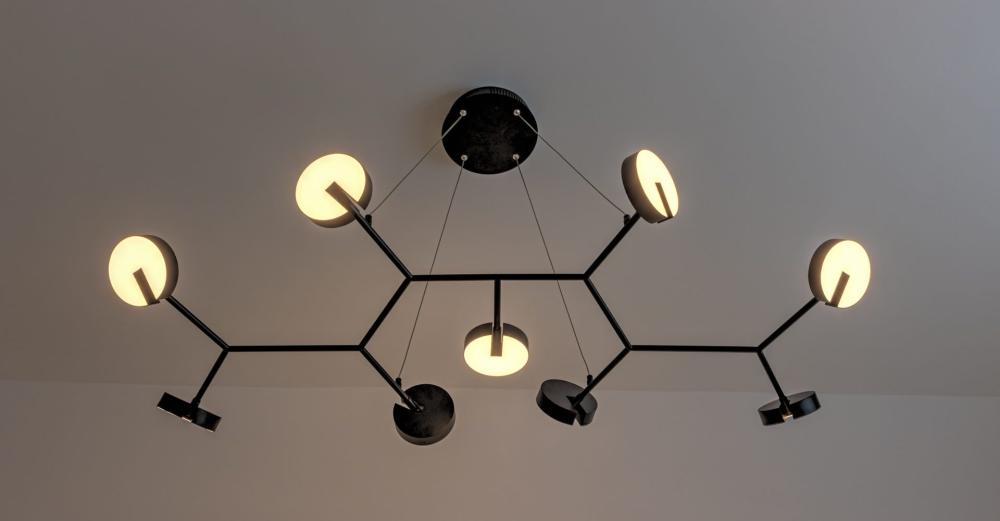 Brațele lustrei Drifter 9 sunt dispuse asimetric, aducând un echilibru vizual și dinamism spațiului. La capetele fiecărui braț se află lentilele cu LED, care asigură o iluminare eficientă și contribuie la estetica modernă a piesei. Drifter 9 este o declarație de stil, o îmbinare perfectă între funcționalitate și estetica modernă, care transformă orice spațiu într-un loc deosebit și primitor.