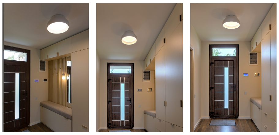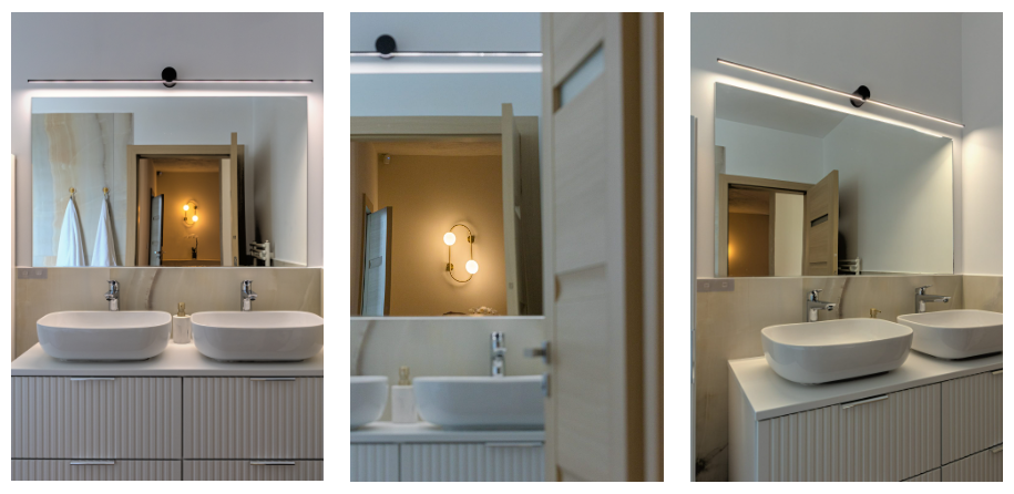 Într-un stil de amenajare care îmbină eleganța minimalistă cu influențele contemporane și scandinave, corpurile de iluminat creează un fundal liniștitor și versatil, care se poate adapta ușor la paleta de culori neutre, predominant în nuanțe de crem și bej, contribuind astfel la crearea unei atmosfere calde și relaxante.