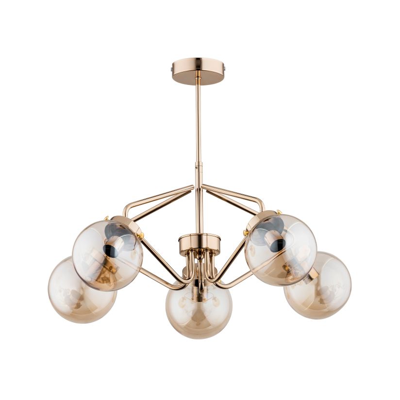 Csillár, KINJA 5, KL105008, 5xE14, borostyánszín, arany