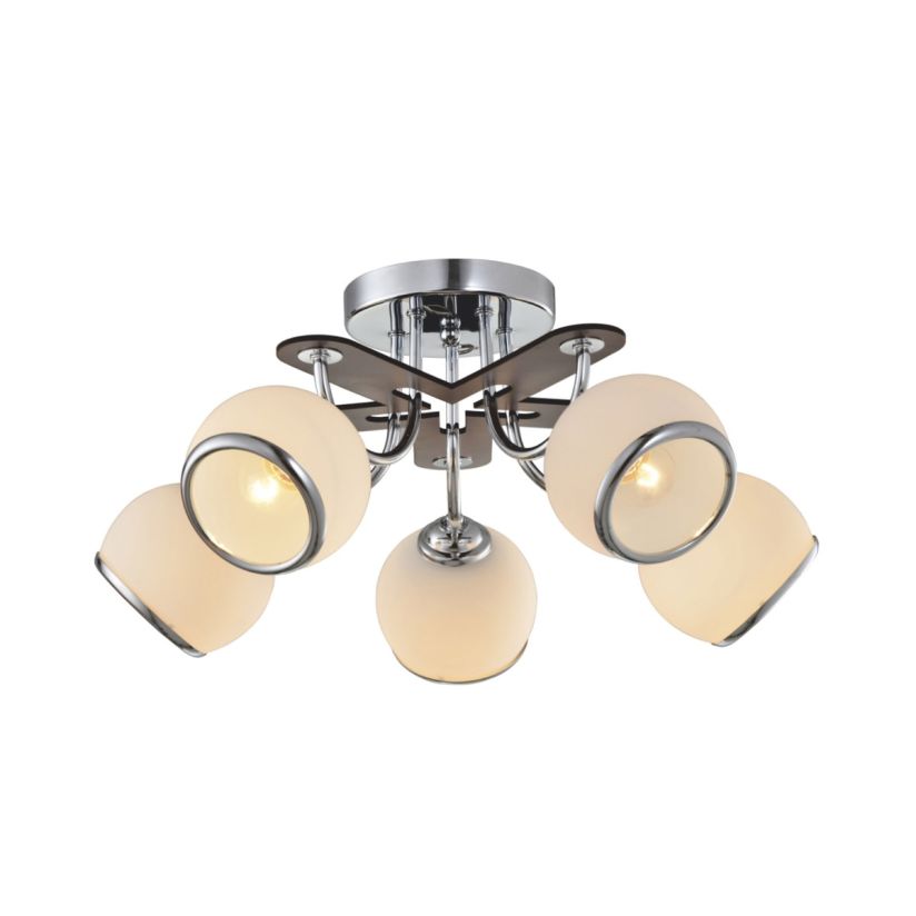 Csillár, ORBS 5, LY-3130, 5xE27, opálfehér, króm, barna