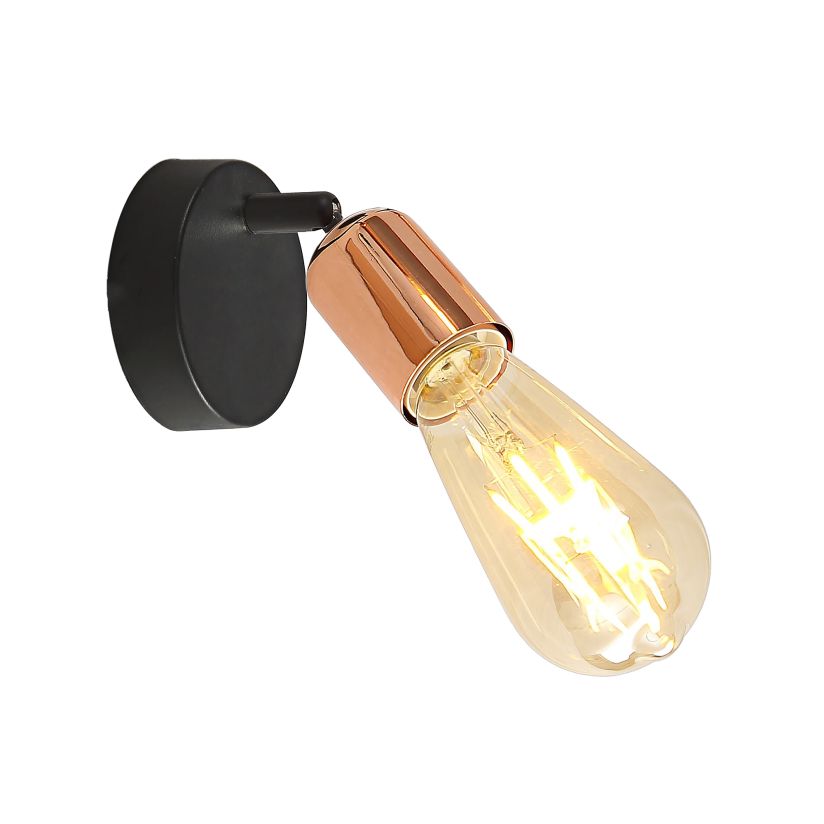 Fali lámpa, STRAIGHT AP1, KL161007, 1xE27, fekete, réz