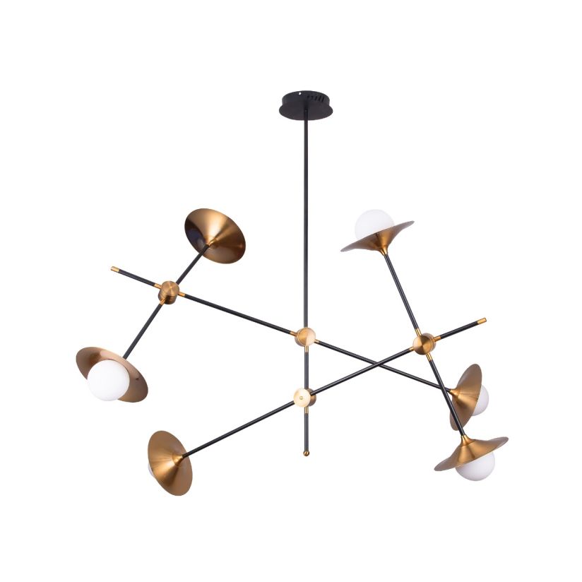 Függesztett csillár, TROMPETS 6, 106000, 6xG9, fekete, arany, opálfehér