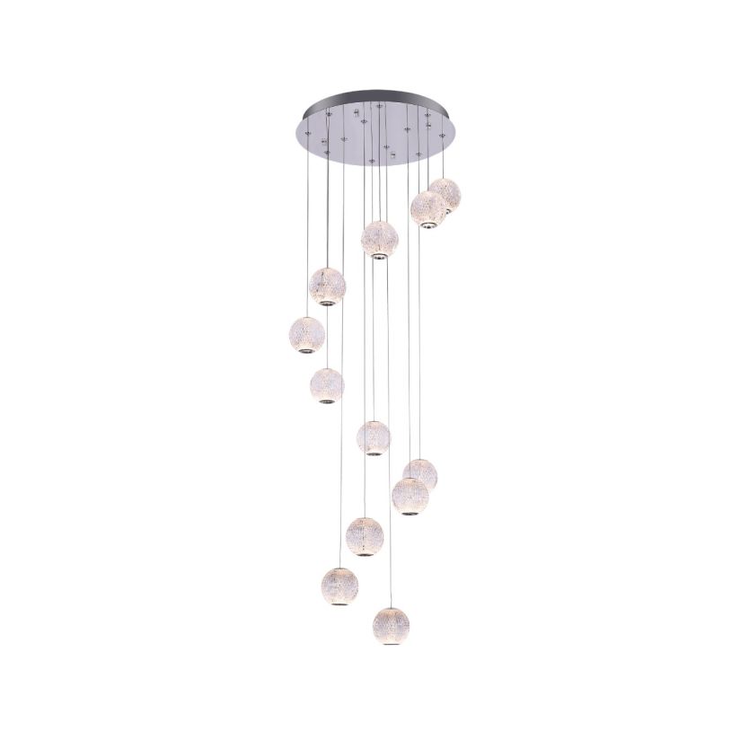 LED Függesztett csillár, ESMOND SP12, 142043, 56W, 3000K, átlátszó, króm