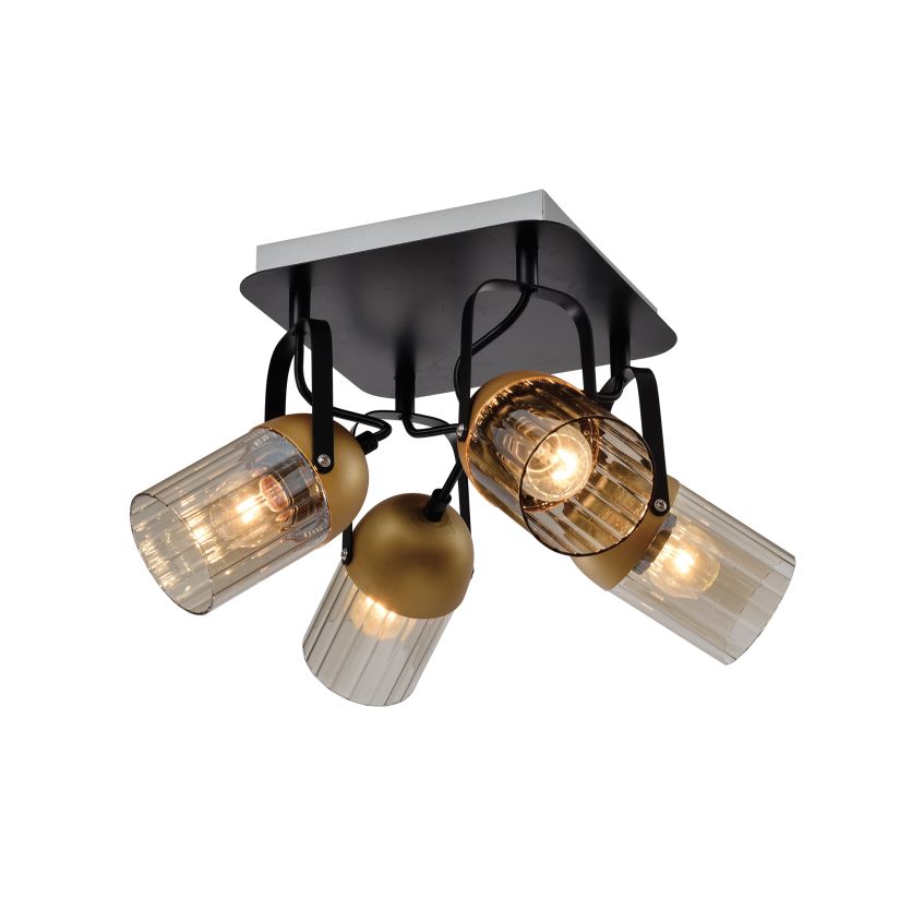 Mennyezeti lámpa, RAFAD 4, LY-3503, 4xE27, arany, borostyánszín, fekete