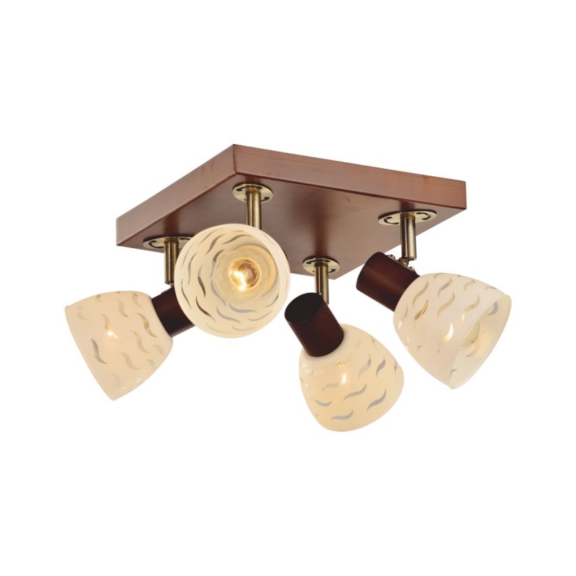 Mennyezeti lámpa, ROUT PL4, KL6289, 4xE14, fehér, barna, antikolt sárgaréz