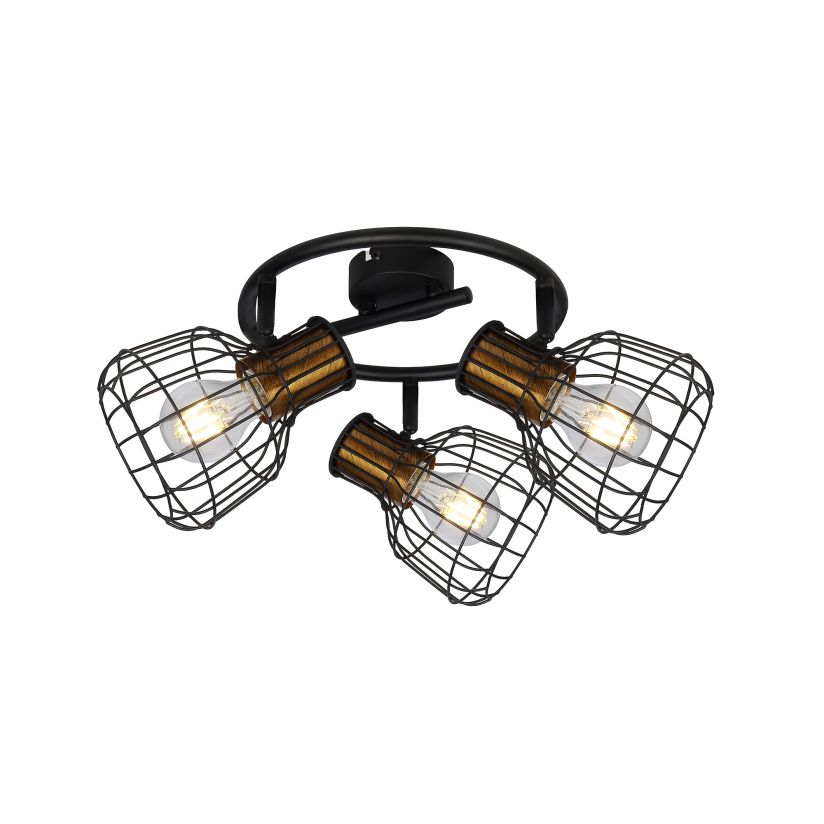Spotlámpa, GRIMY PL3, KL163009, 3xE27, fekete, sárgaréz