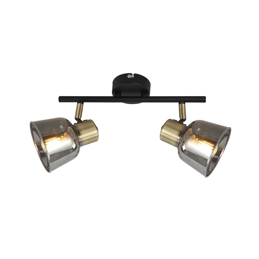 Spotlámpa, SMOKY AP2, KL162005, 2xE14, antikolt sárgaréz, füstös árnyalat, fekete